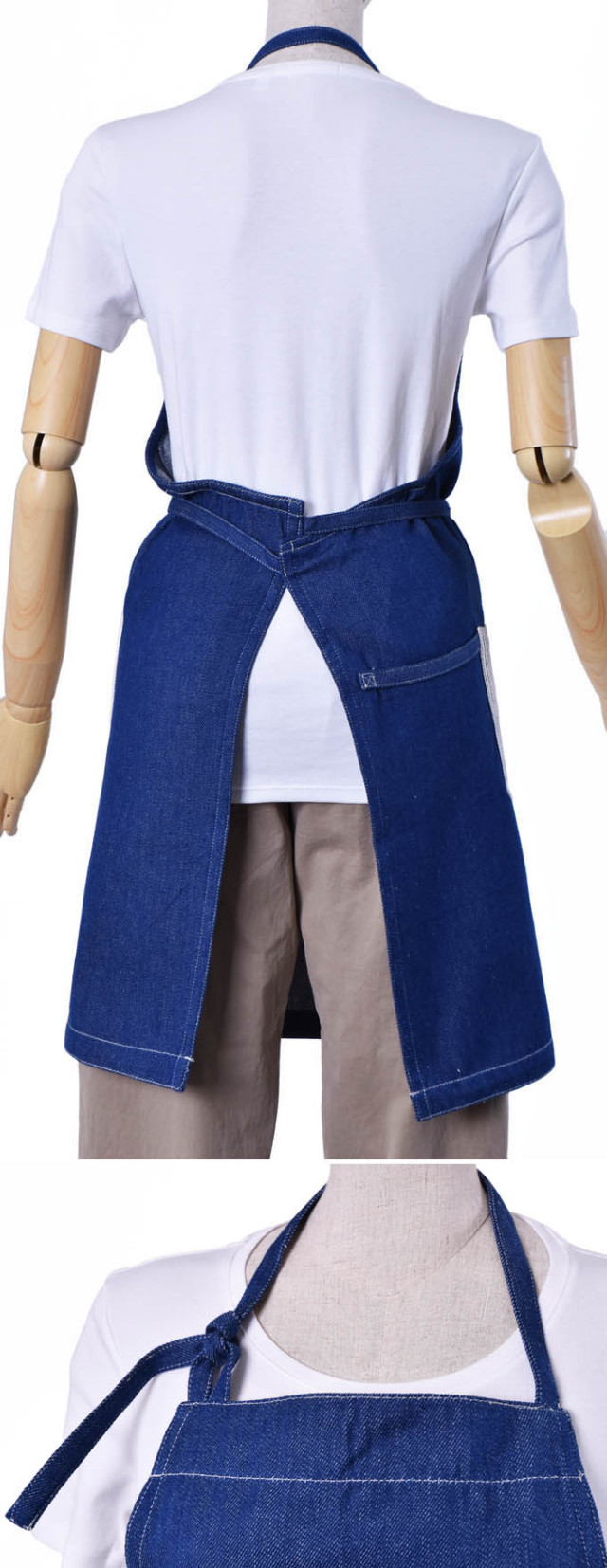 | 特長 | ザックリとしたインド綿をデニム風にした素材のショートエプロンです。肩ヒモはフォルターネックなのでサイズも幅広くスッキリしていてウエストのポケットが色や柄違いでアクセントになっています。同じ素材でお揃いのキッズエプロンもあります。 |