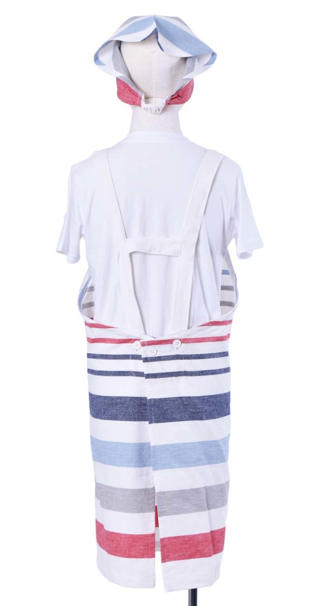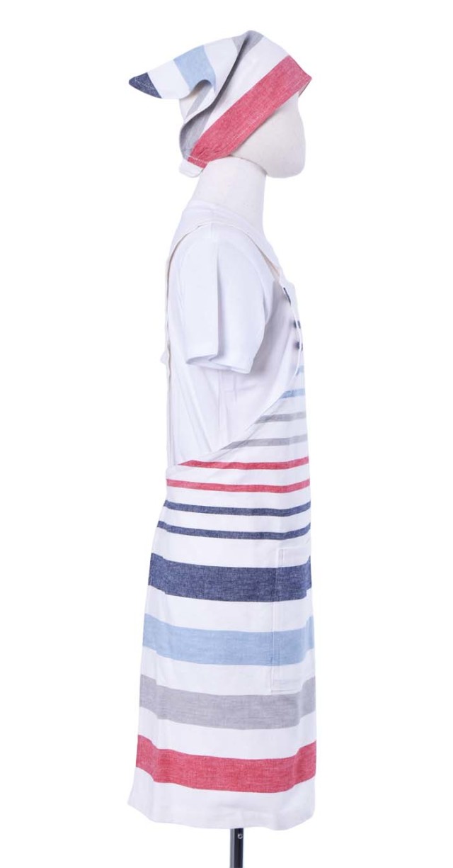| 特長 | カラフルで楽しいボーダー柄のキッズエプロンで、ナチュラルなアイボリーがベースカラーなのでさらりと軽い感じの素材です。同じ素材でお揃いのママ用ショートエプロンもあります。 |