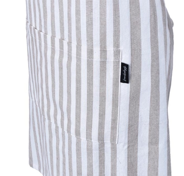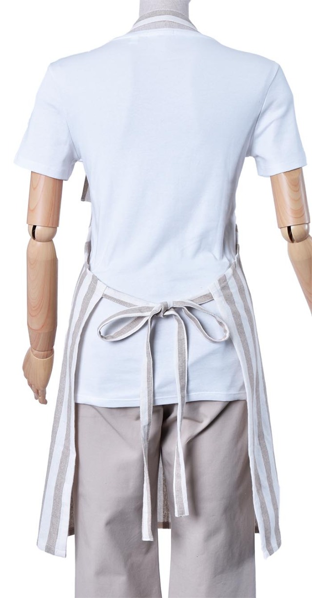 | 特長 | シンプルなストライプ柄のフォルターネックエプロンです。肩ヒモがフォルタ―ネックでスッキリとしたラインです。腰ヒモはうしろで縛るタイプなのでサイズも幅広く対応出来ます。 |