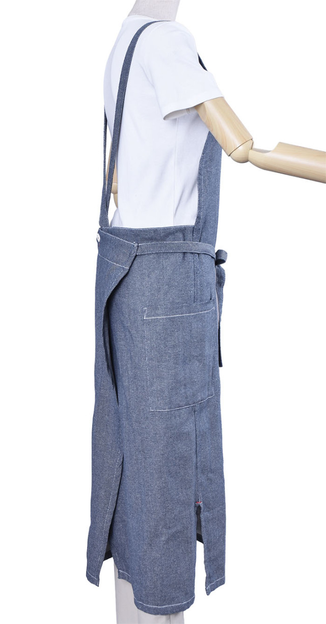 | 特長 | やわらかいコットン100%素材でデニム風なのでカジュアルに男女問わず使えるユニセックス仕様です。ロング丈でウエストの生地巾も十分にとっているのでゆっらりと着られます。 |