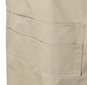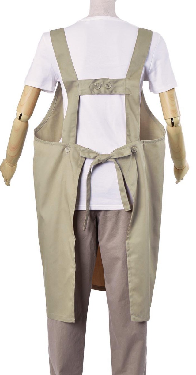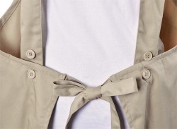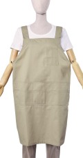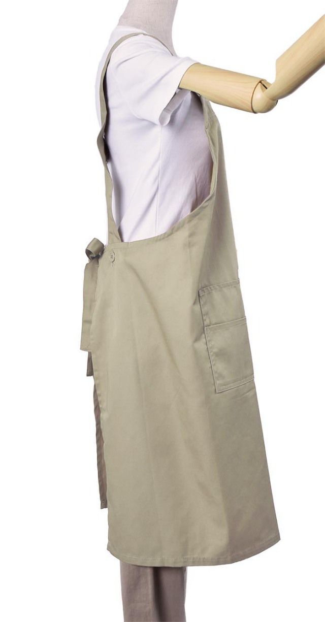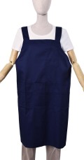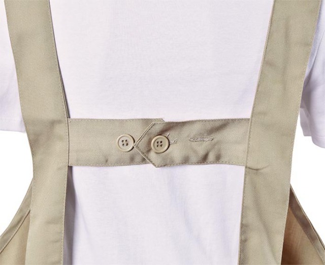 | 特長 | 肩ヒモがH型で肩に負担がかからない無地の綿ポリ素材のエプロンでポリエステル80%の素材なのでお洗濯も楽です。肩ヒモのサイズや長さの調節が出来てウエストはヒモで縛るタイプなのでサイズの幅が広くとれます。 |