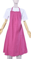 うっすらとヘリンボーンのドビーが入った柔らめの素材で、前はスッキリ後ろはたっぷりのギャザーのデザイン、腰ヒモは後ろ縛り肩ヒモはフォルタネックサイズも幅広く着られます。